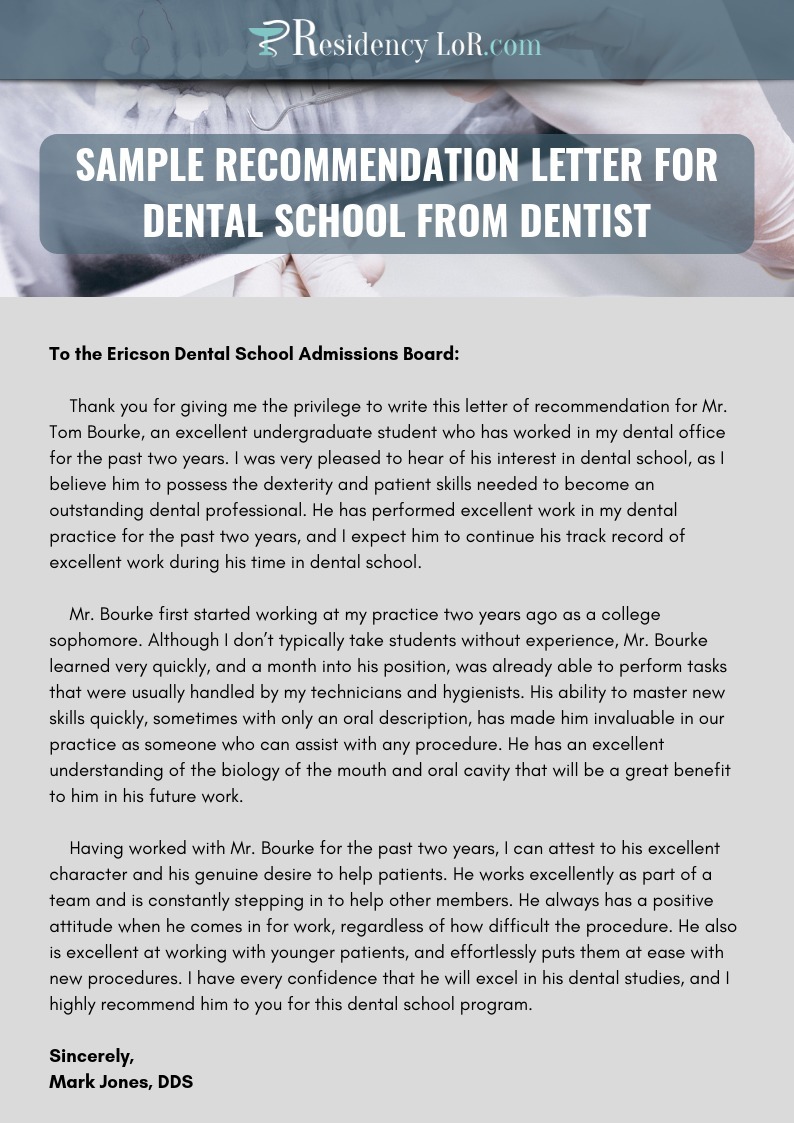 Dental School Letter Of Recommendation Sample 1lor Guide