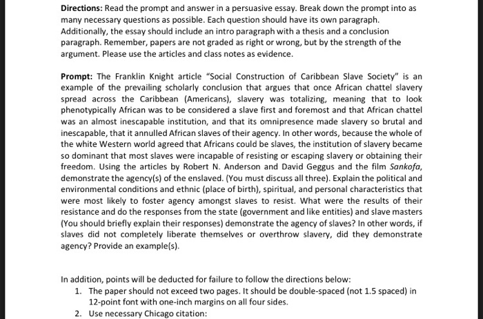 Directions Read The Prompt And Answer In A Persua Chegg Com