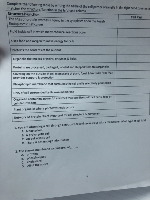 Solved The Sites Of Protein Synthesis Found In Cytoplasm