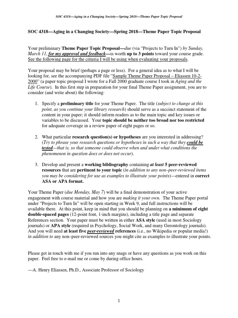 Soc 4318 Sp18 Instructions For Theme Paper Topic Proposal Hypothesis Sociology